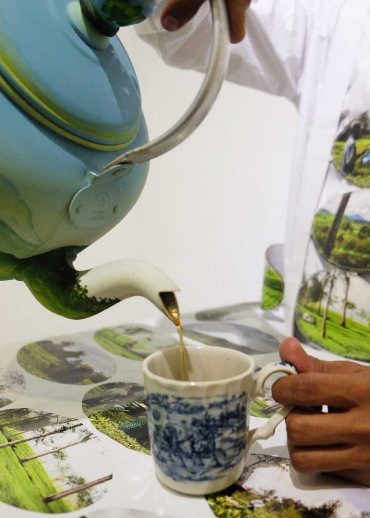Berikutnya, karya Mella Jaarsma (2013) kembali disajikan, dengan judul “A Blinkered View – High Tea, Low Tea”. Segelas teh (yang diakui sebagai teh) kualitas terbaik yang diproduksi di Indonesia disajikan di meja. Biasanya, teh ini hanya dijual untuk masyarakat kelas atas.